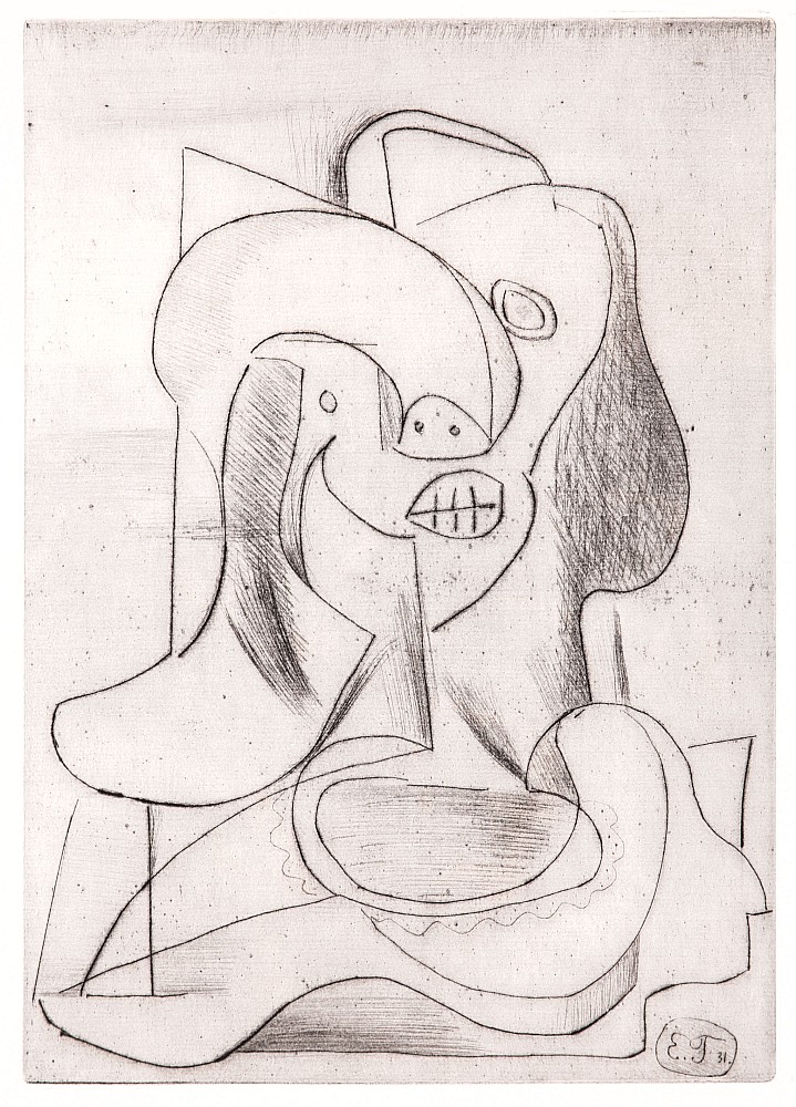 lept, 1927, 27 x 30,5 cm, sign. T. F. Šimon, přilepeno k paspartě, the disciple of prof. M. Pirner at the Academy of Fine Arts in Prague, member of Hollar, SVU Mánes, Société du Salon d'Automne and Salon National des Beaux Arts