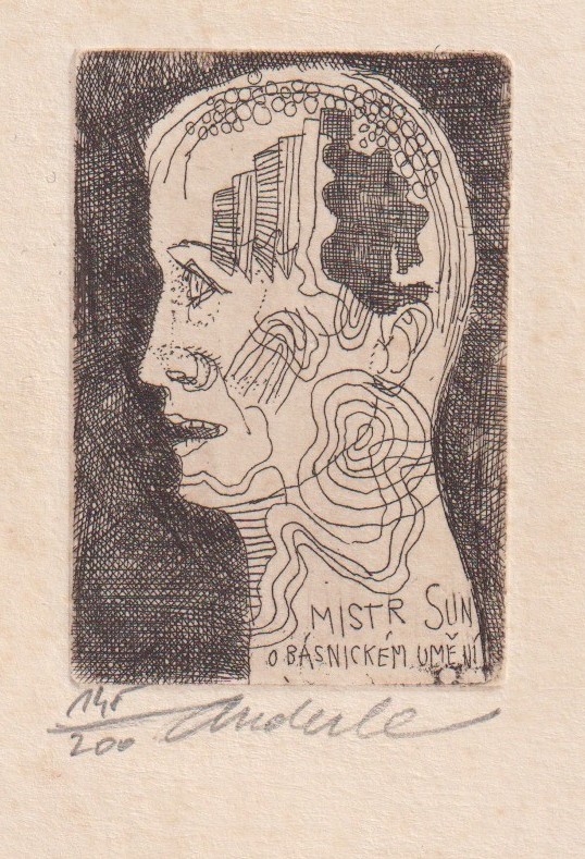 lept, 4,7 x 3,3 cm, sign. DU Anderle, zaskleno, č. 145/200, Aantiqari.at Radhošťská, , the disciple of prof. Pelc and V. Silovsky at The Academy of Arts, Architecture and Design in Prague and Academy of Fine Arts in Prague, member of The Hollar Association of Czech Graphic Artists
