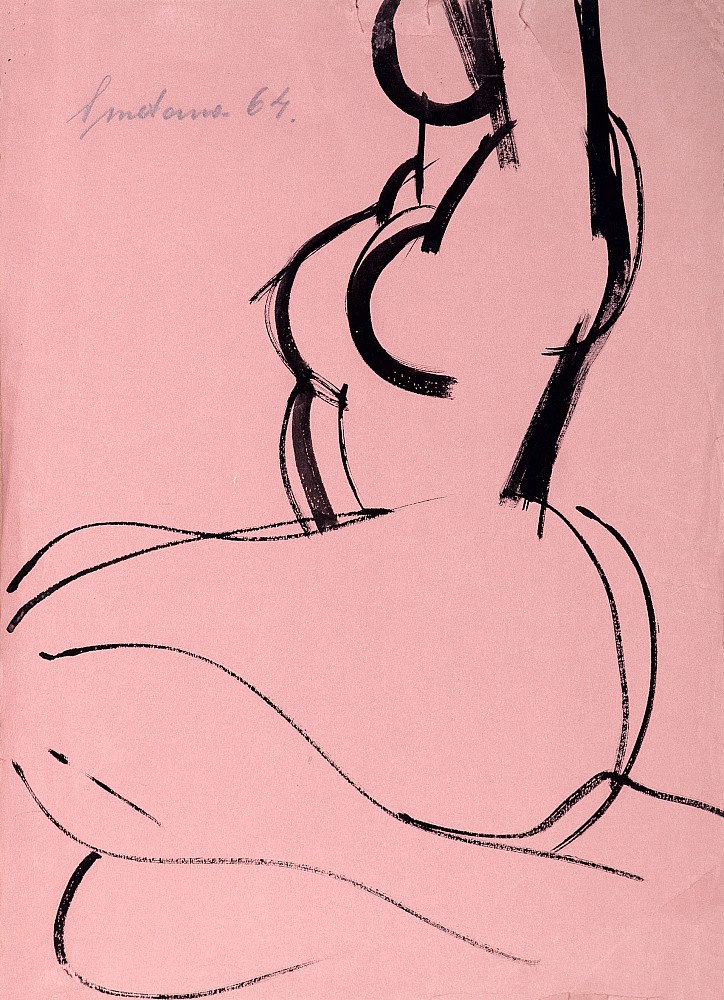 tuš, papír, 1964, 62,5 x 45 cm, sign. LN Smetana 64, vzadu razítko čfvu, kraje potrhány a pomačkány, the disciple of prof. O. Blazicek, K. Pokorny and C. Bouda at The Faculty of Architecture - The Czech Technical University in Prague, prof. J. Benda and A. Strnadel at The Academy of Arts, Architectu…