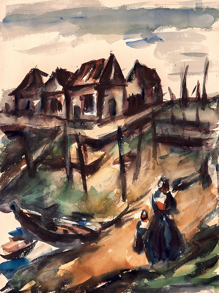 kombinovaná technika, tužka, akvarel, papír, 1918, 33,5 x 41,5 cm, sign. PD F. T. Šimon 1918, the disciple of prof. M. Pirner at the Academy of Fine Arts in Prague, member of Hollar, SVU Mánes, Société du Salon d'Automne and Salon National des Beaux Arts
