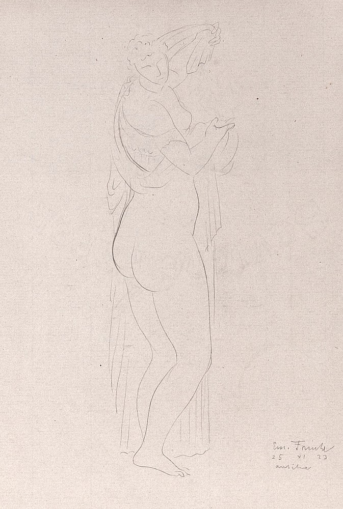 tužka, papír, 1923, 26,5 x 22 cm, sign. PD Em. Frinta, the disciple of prof. Svabinsky, Obrovsky and Nechleba at The Academy of Fine Arts in Prague, prof. Kupka in Paris