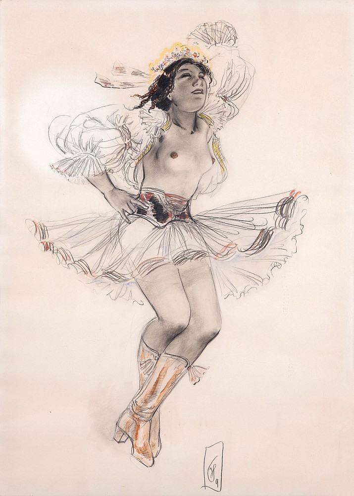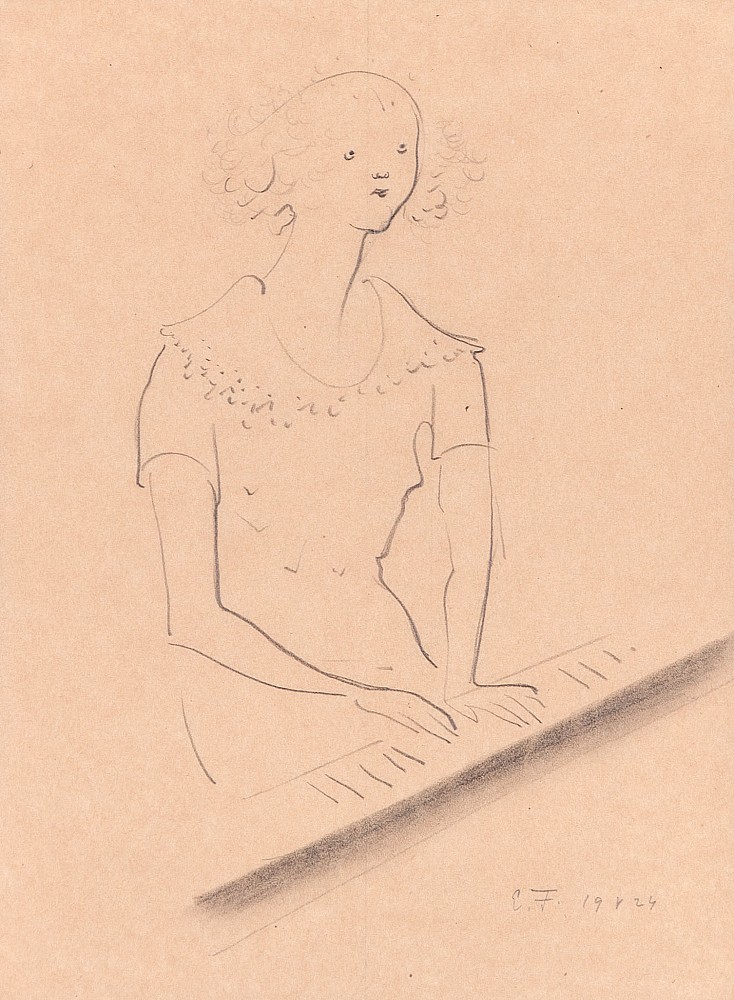 tužka, papír, 1924, 31 x 21 cm, monogr. PD E. F., v horní části přichyceno k podkladovému papíru, the disciple of prof. Svabinsky, Obrovsky and Nechleba at The Academy of Fine Arts in Prague, prof. Kupka in Paris