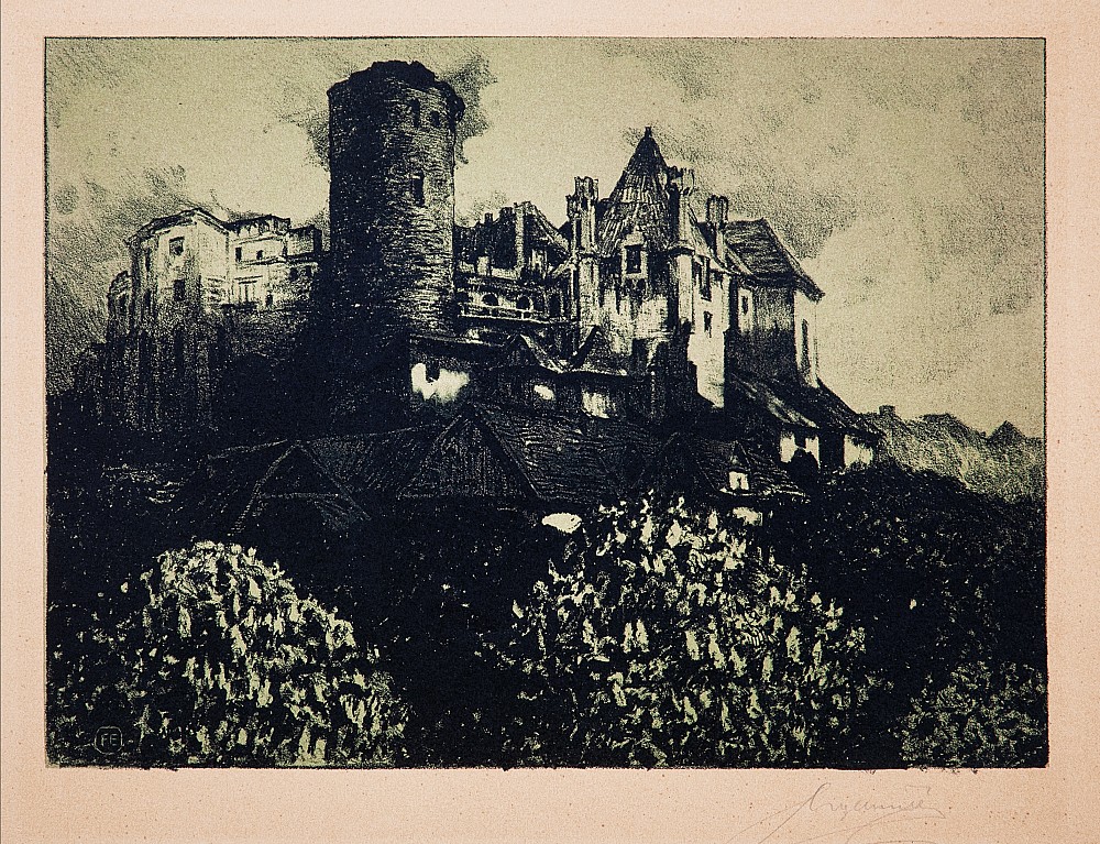 litografie, 22,5 x 28,5 cm, sign. PD F. Engemüller, PD značeno na kameni FE, mírně zažloutlý papír, mírně natržený LD roh, Provenance: Antiquarian Dlážděná