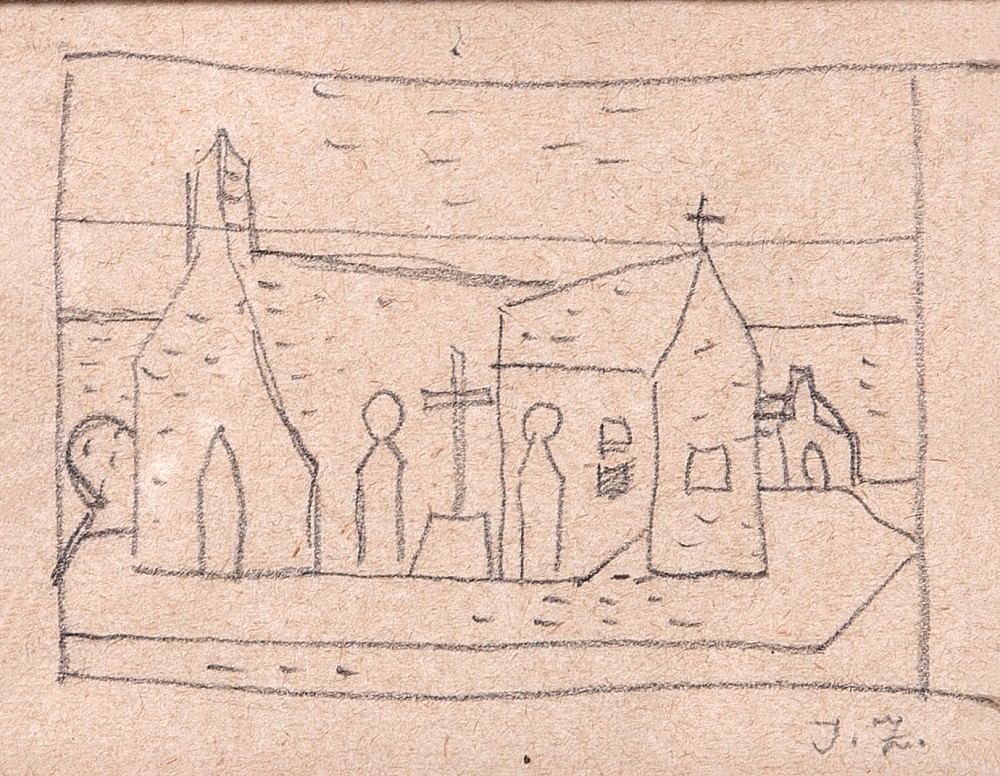 tužka, papír, 5 x 6,5 cm, monogr. PD J.Z., rám, Aantiqari.at Radhošťská, , the disciple of Frantisek Zenisek jr., member of Sursum, the group Tvrdosijni, The Umelecka beseda and The Manes Association of Fine Artists