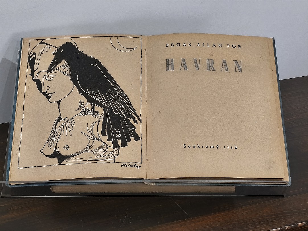 bibliofilie, kresba ve frontispisu Fr. Ketzek, vyšlo jako soukormý tisk Drahomíry Rotterové u příležitosti stého výročí Havrana, ex. 51/250, překlad Dagmar Wagnerová, plpl. vazba, bez paginace, v dobrém stavu, Antiqari.at Radhošťská, antiqari.at Radhošťská, žák prof. V. H. Brunnera a J. Bendy na VŠU…