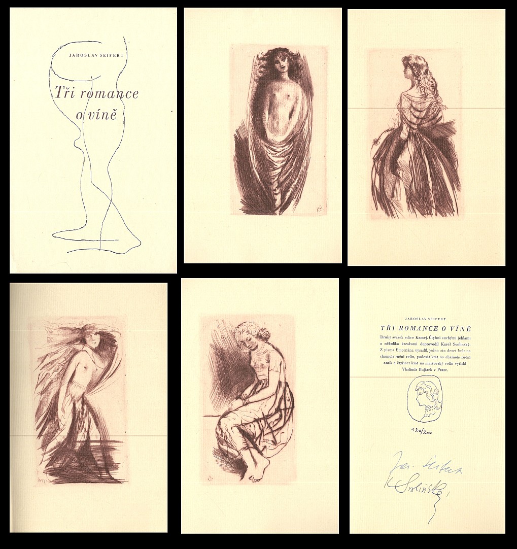bibliofilie, 4x suchá jehla, kresby a podp. v tiráži K. Svolinský, podp. J. Seiferta v tiráži, vyd. Vl. Bujárek, Praha, 1956, autorský tisk (vydáno 200 exemplářů) na chamois ruční antik, volné archy v pův. ob., nerozřezáno, velmi dobrý, pěkný stav, Antiqari.at Radhošťská, antiqari.at Radhošťská, žák…