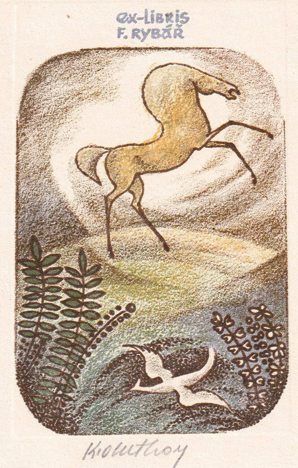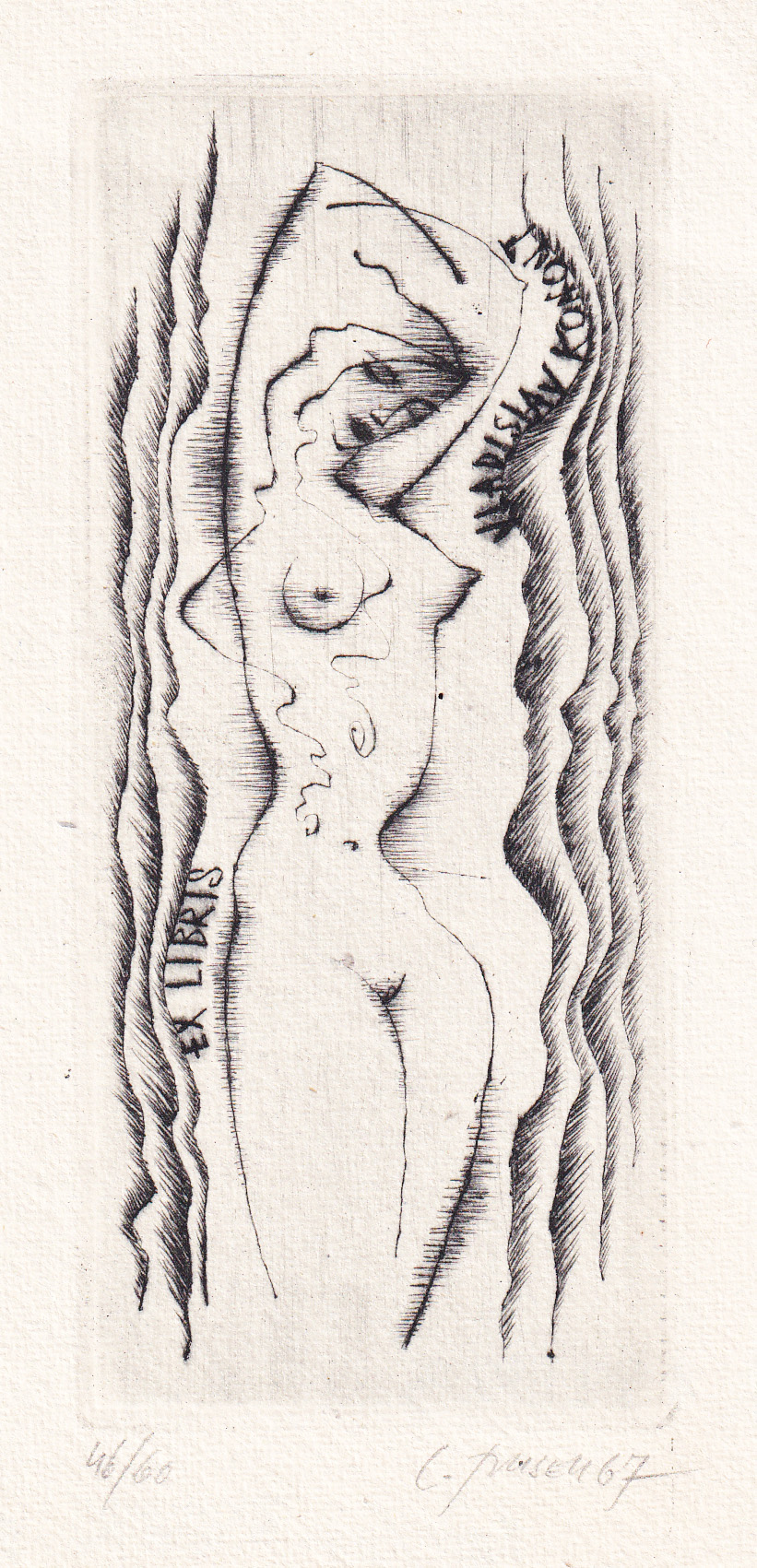 litografie, 11,2 x 8,1 cm, sign. PD Karel Toman, 112/160, Ex libris Raymond E. Bowen, Antikvariát Dlážděná, žák prof. V. Sychry a V. Pukla na AVU v Praze, člen SČUG Hollar