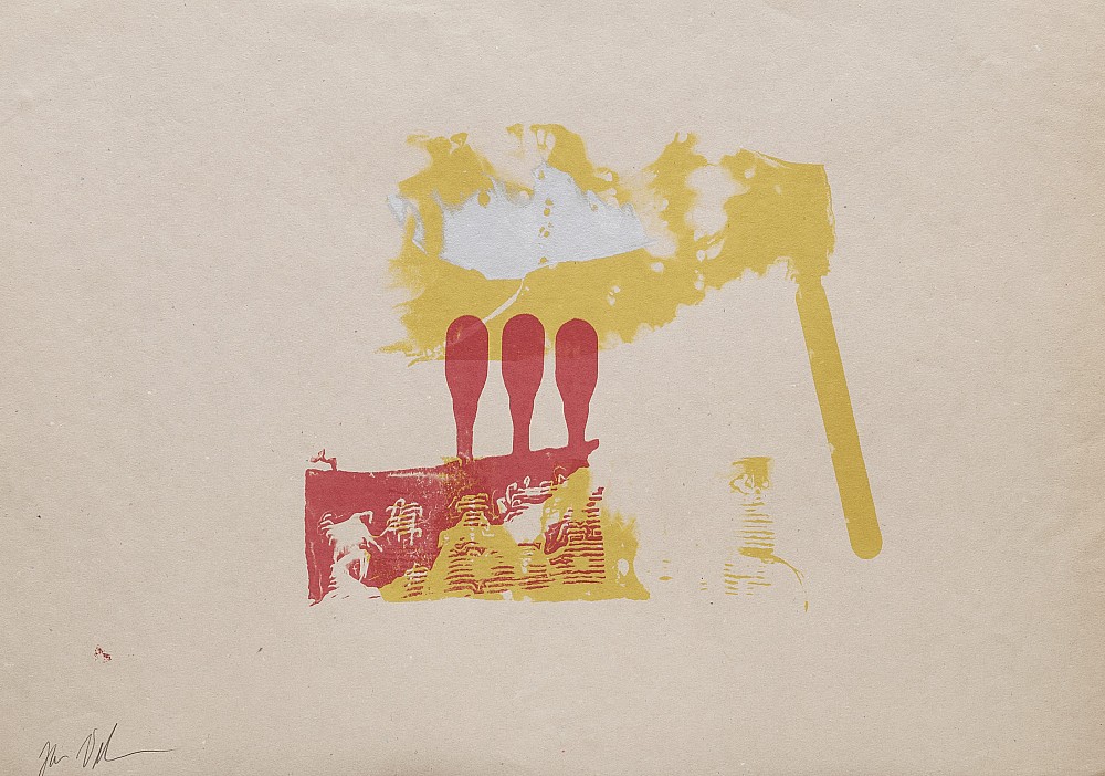 akvarel, kvaš, tuš, zlato, papír, 1986, 52 x 45 cm, sign. LD Josef Šolc 86, Provenance: Antiquarian Dlážděná, disciple of Prof. J. Gočár at the Academy of Fine Arts in Prague