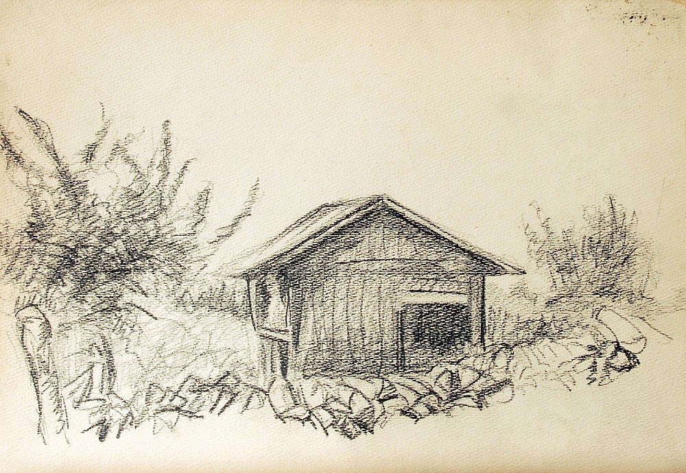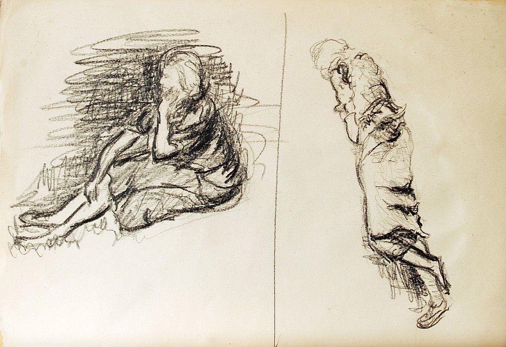 uhel, papír, 1956, 33,7 x 24 cm, monogramováno PD 21/8 56 JŘ, v dolní části posáno autorem, the disciple of prof. J. Koula, member of The Hollar Association of Czech Graphic Artists