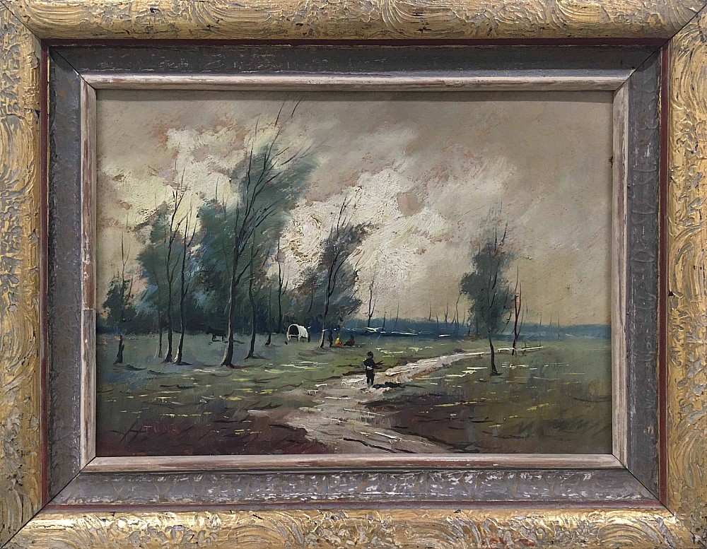 olej, karton, 11 x 21,5 cm, sign. PD J.Dlabal, karton na zadní straně potišrěný, Aantiqari.at Radhošťská, , worked with A. Dolezal and L. Musil, reached the great success in Japan
