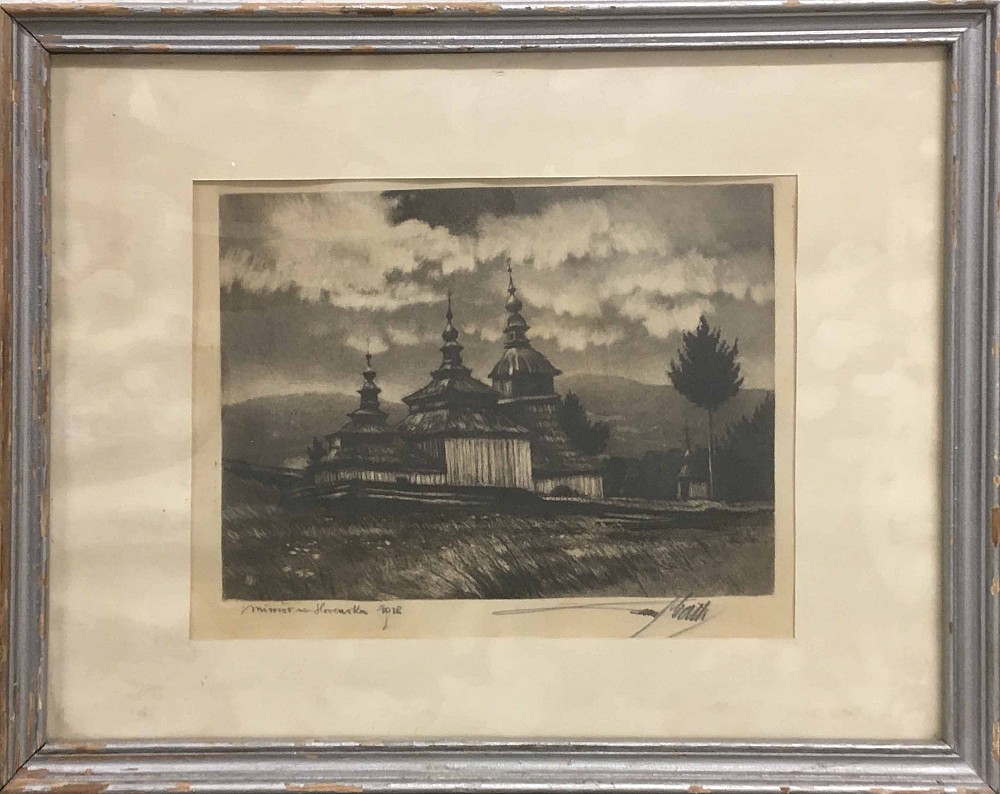 kolorována litografie, 32 x 33 cm, sign.PD Oberthor, rám, poškozeno, Aantiqari.at Radhošťská, , the disciple of prof. I. Kulec at The Ukrainian Academy of Fine Arts, prof. V. Pukl and V. Silovsky at The Academy of Fine Arts in Prague, member of The Hollar Association of Czech Graphic Artists
