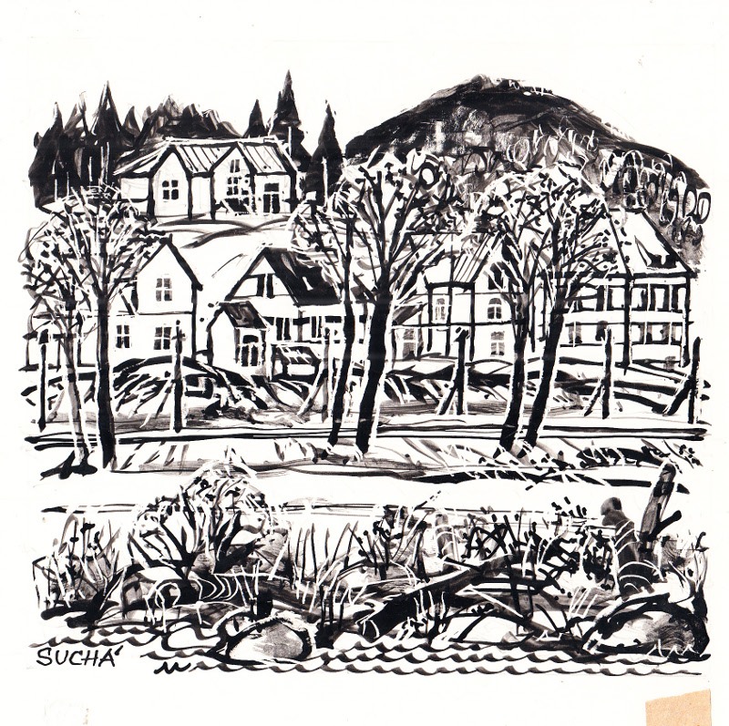 akvarel, papír, 22 x 28,5 cm, sign. LD Karel Kapoun, rám