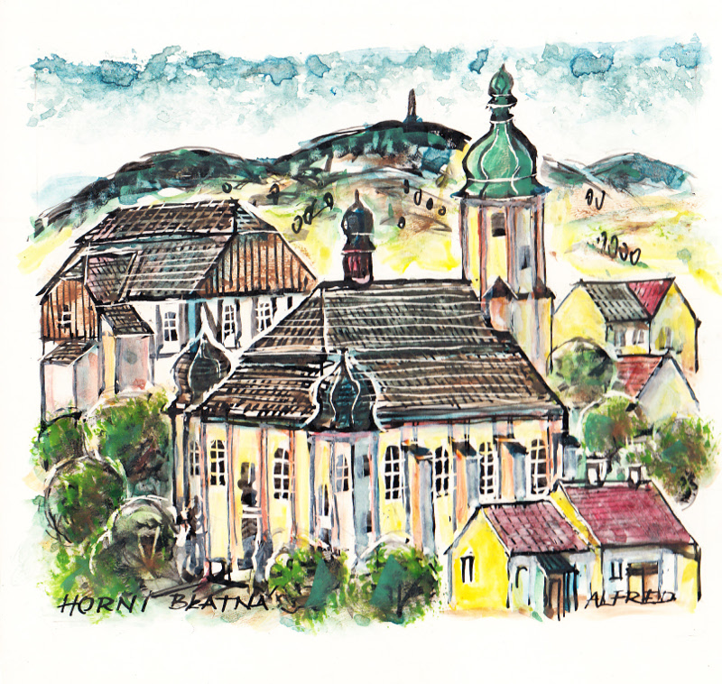 akvarel, papír, 1994, 30 x 40 cm, sign. PD Lada Zemánková , rám