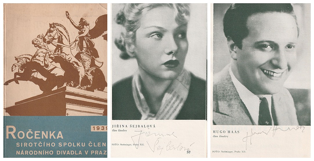 brož, 18,5 x 13 cm, podpis Hugo Haas a Jiřina Šejbalová, vyd. Sirotčí, vdovský a podpůrný spolek členů Národního divadla v Praze, 1939, pův. brož, 223s., z části rozlepeno, dobrý stav, Provenance: Antiquarian Dlážděná