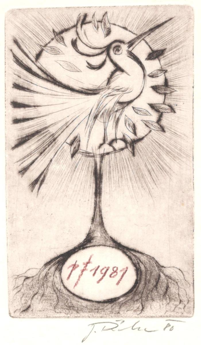 lept, 1980, 13,4 x 8 cm, sign. PD J. Říha 80, Aantiqari.at Radhošťská, , the disciple of prof. V. Tittelbach, K. Minar, V. Sychra and J. Bauch at The Academy of Fine Arts in Prague and The Academy of Arts, Architecture and Design in Prague