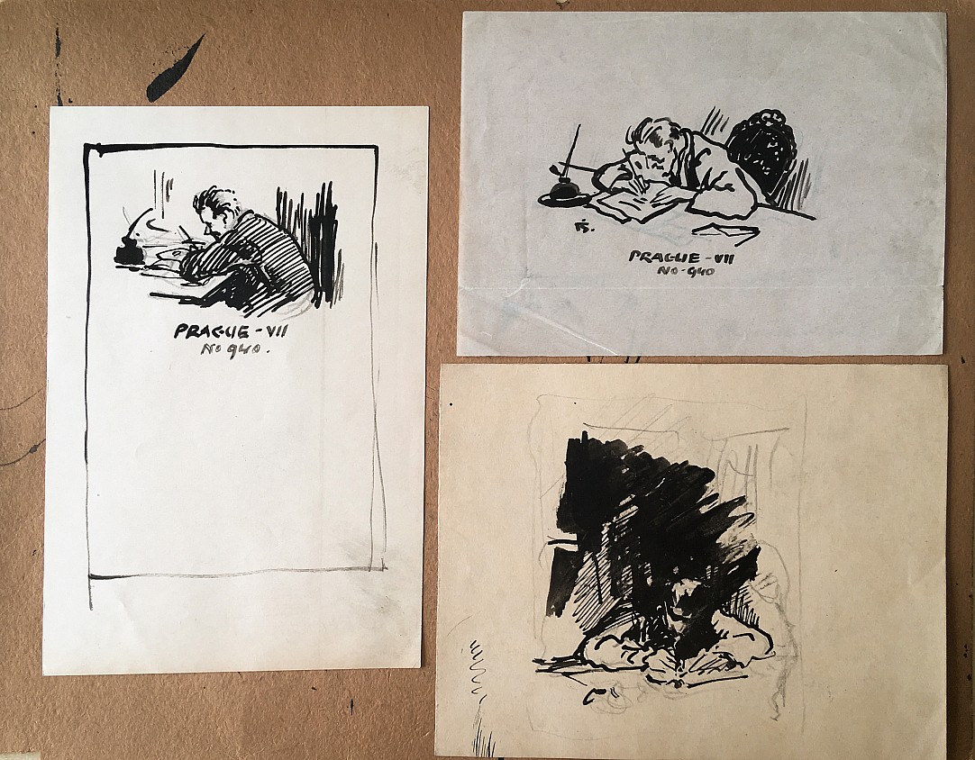 tuš, papír (konvolut tří kreseb), vše cca 7 x 9 cm cm, the disciple of prof. M. Pirner at the Academy of Fine Arts in Prague, member of Hollar, SVU Mánes, Société du Salon d'Automne and Salon National des Beaux Arts