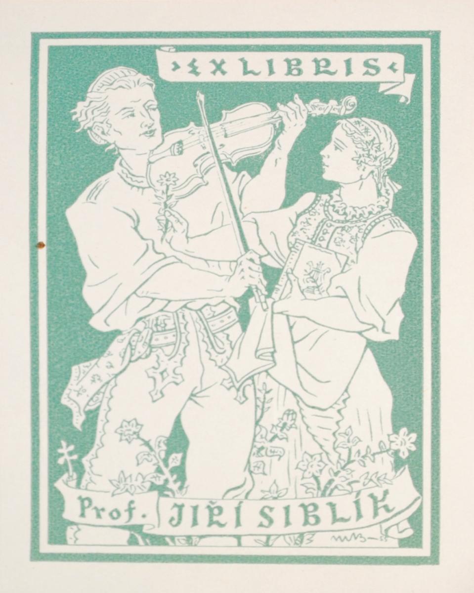 Houslista a děvče v krojích (Ex Libris Prof. Jiří Siblík)