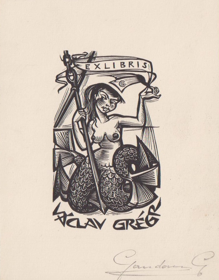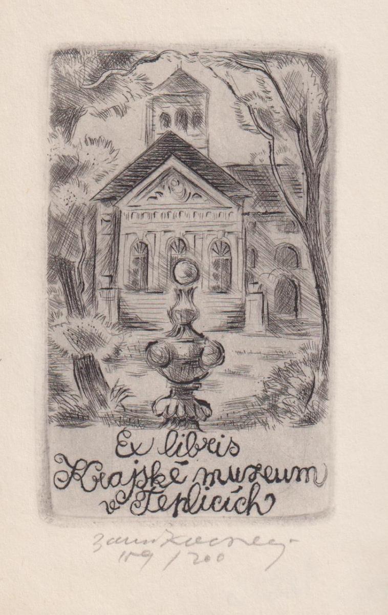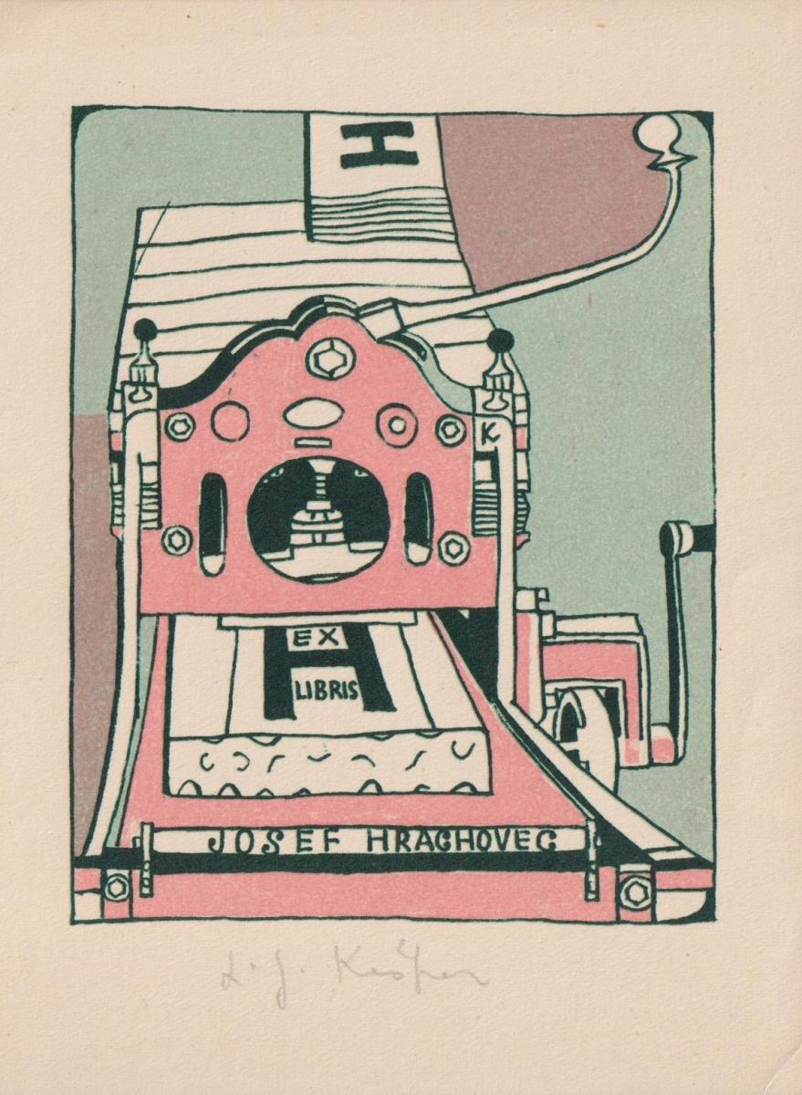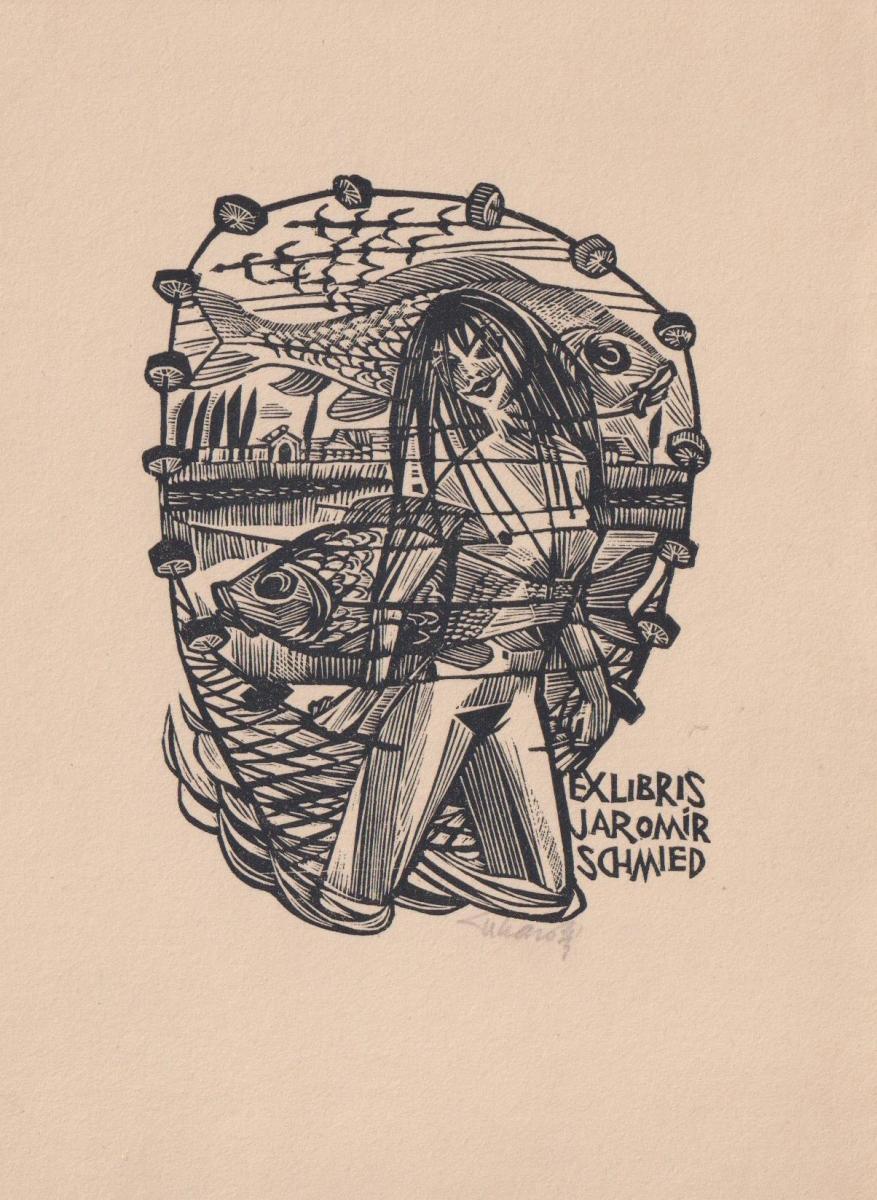 litografie, 1974, 8,5 x 6,5 cm, sign. V. Junek 74, Aantiqari.at Radhošťská, , the disciple of prof. J. Benda and J. Obrovsky, member of The Association of Collectors and Friends of Ex libris