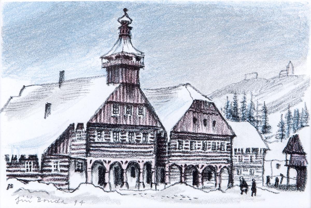 litografie, 1994, 9,5 x 14 cm, sign.LD Jiří Bouda 94, rám, Aantiqari.at Radhošťská, , studied at The State Graphic School in Prague, the disciple of prof. K. Svolinsky at The Academy of Arts, Architecture and Design in Prague