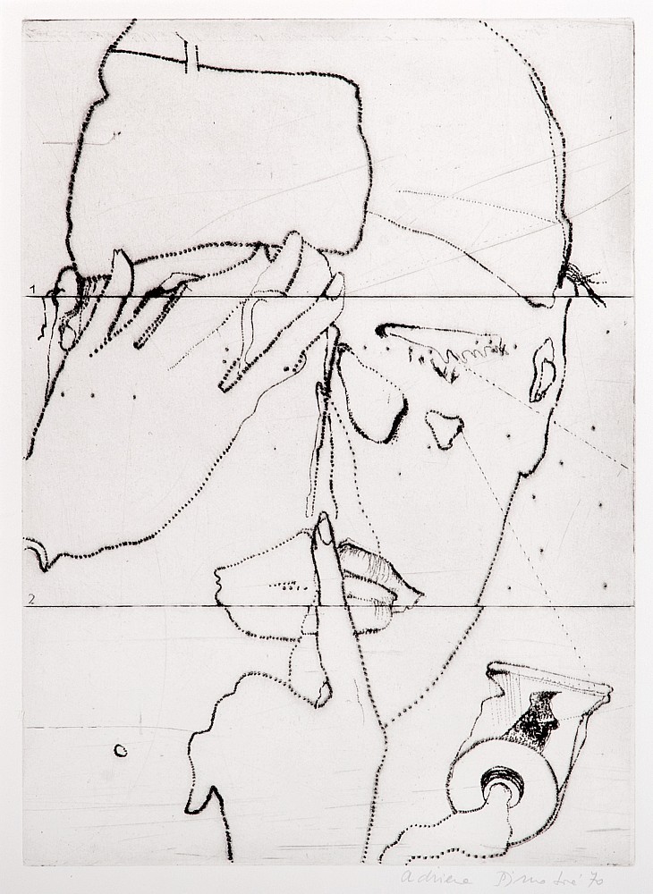 suchá jehla, 1970, 34,5 x 25 cm, sign. PD Adriena Šimotová 70, rám, nabízené grafické dílo je ukázkou autorčina zaujetí v lidské tváři. Fenomén tváře se v jejím díle mění, vyvíjí a postupně naplňuje, the disciple of prof. J. Svab at Officina Pragensis, prof. Z. Balas at The State Graphic School in P…