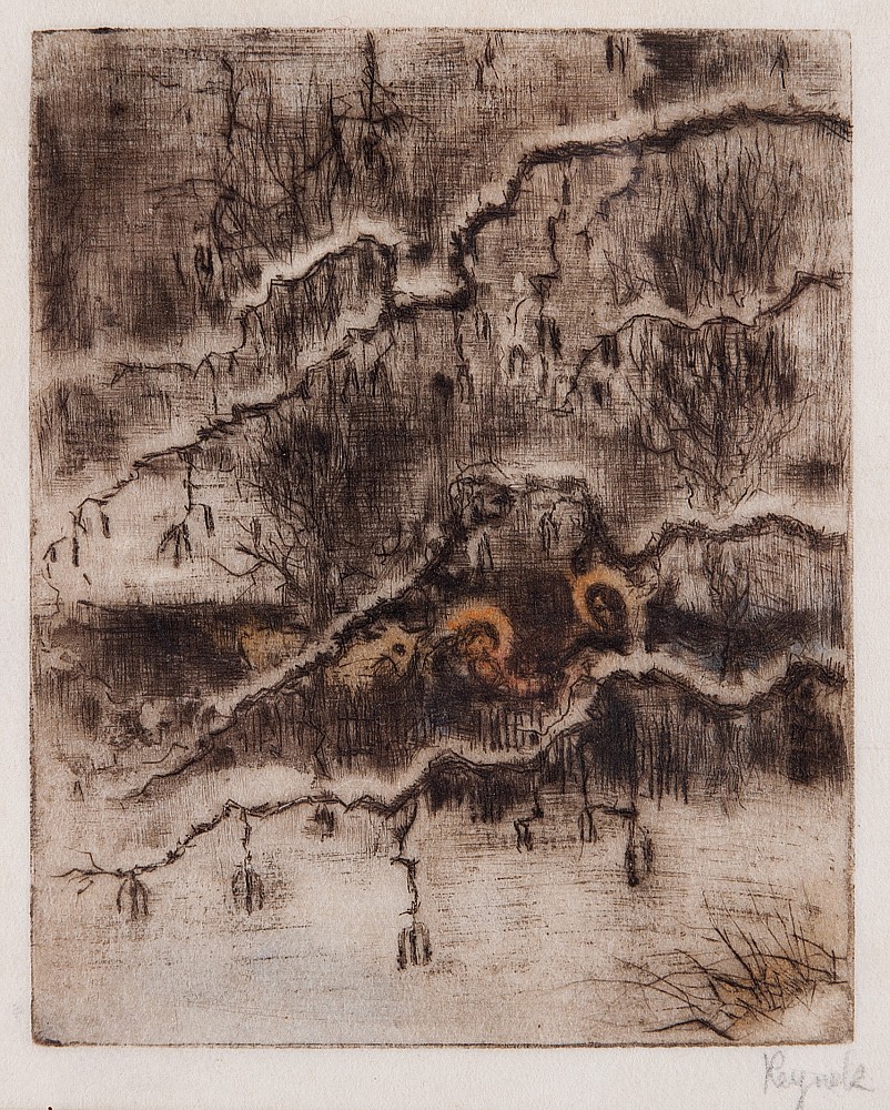 suchá jehla, monotyp, 10,5 x 8,5 cm, sign. PD Reynek, rám, dobová adjustace, básník a grafik Bohuslav Reynek prožil většinu svého života na Vysočině. Samota petrkovského statku se stala jednou ze dvou velkých Reynkových inspirací. Petrkov byl v nepřízni nacistické i komunistické doby Reynkovou velko…