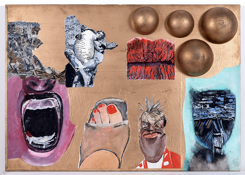 kombinovaná technika, asambláž, dřevo, sololit, 1998, 103 x 72,5 cm, sign. vzadu Jaroslav Vožniak 1998, vzadu štítek z výstavy Jaroslav Vožniak a jeho škola, Příbram, dále šítek z výstavy Pocta divnosti Státní Galerie Cheb, štítek z výstavy Českého muzea výtvarných umění - Pocta divnosti Praha, Huso…