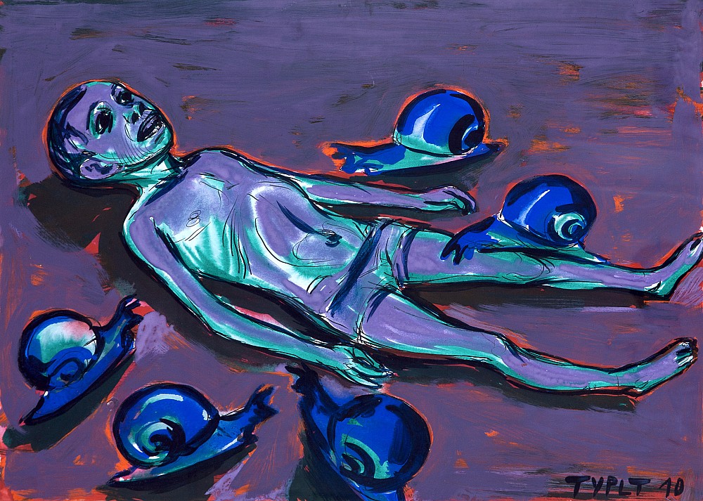 tempera, papír, 2010, 49,5 x 69 cm, sign. PD Typlt 10, rám, mimořádně působivé dílo ze sběratelsky vyhledávaného období od čelného představitele současné české malby, který ve svém díle zhodnocuje výsledky školení u významných profesorů na českých a německých uměleckých školách, jež dále zcela osobi…
