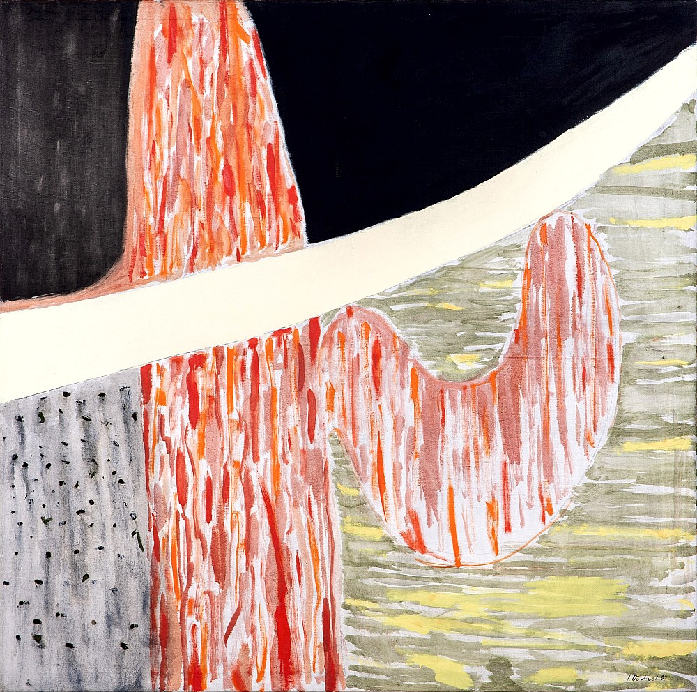 olej, plátno, 2004, 150 x 150 cm, sign. PD I. Ouhel 04, lišta, vzadu štítek Galerie Gema, the disciple of prof. Soucek, member of Volne seskupeni 12/15, Still even late, member of The Umelecka beseda