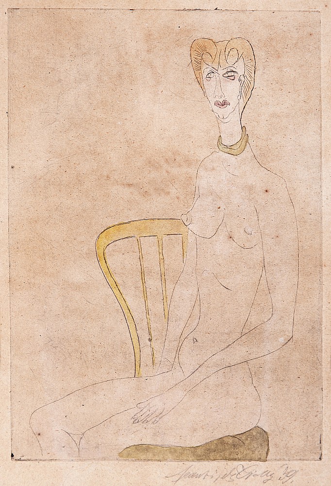suchá jehla, akvarel, 1939, 26 x 18 cm, sign. PD František Tichý 39, rám, na zadní straně popsáno, Provenance: Antiquarian Dlážděná, the disciple of prof. J. Obrovsky, V. Nechleba and K. Krattner, member of Devetsil, The Hollar Association of Czech Graphic Artists, UB, The Manes Association of Fine …