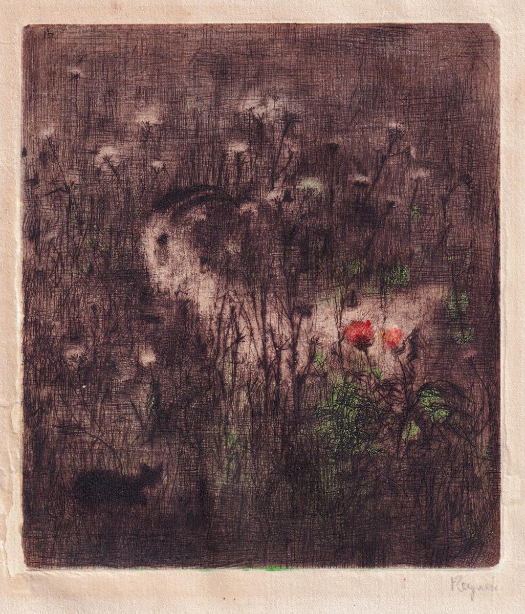 suchá jehla s monotypem na japanu, 1955, 13,3 x 11,7 cm, sign. PD Reynek, rám, konzultováno s Romanem Vosičkou, odborně restaurováno, Provenance: Antiquarian Dlážděná