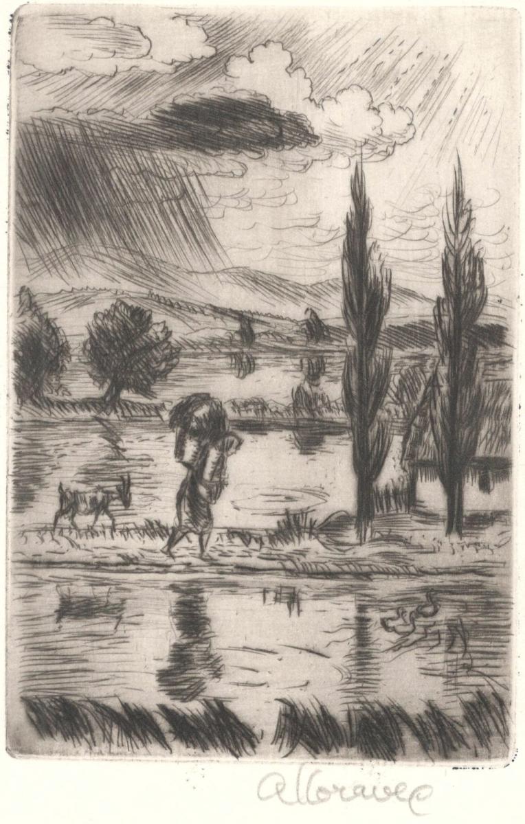 suchá jehla, 12,8 x 8,6 cm, sign. PD A. Moravec, Aantiqari.at Radhošťská, , the disciple of prof. E. Dite, A. Hofbauer and F. Kysela at The Academy of Arts, Architecture and Design in Prague and prof. M. Svabinsky at The Academy of Fine Arts in Prague, member of The Umelecka beseda, The Hollar Assoc…