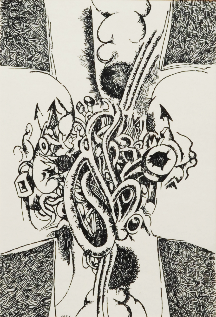 šitá koláž, 1991, 192,5 x 93 cm, sign. DU Hampl 91, rám, z důvodu rozměrů, hmotnosti a uložení v externím depozitáři není možné připravit dílo na ukázku. Dílo je nutné vyzvednou osobně po dohodě s Aukční síní. Zaslání díla není možné, the disciple of prof. J. Masak at The School of Decorative Art i…