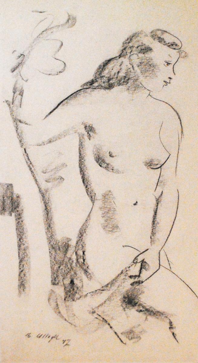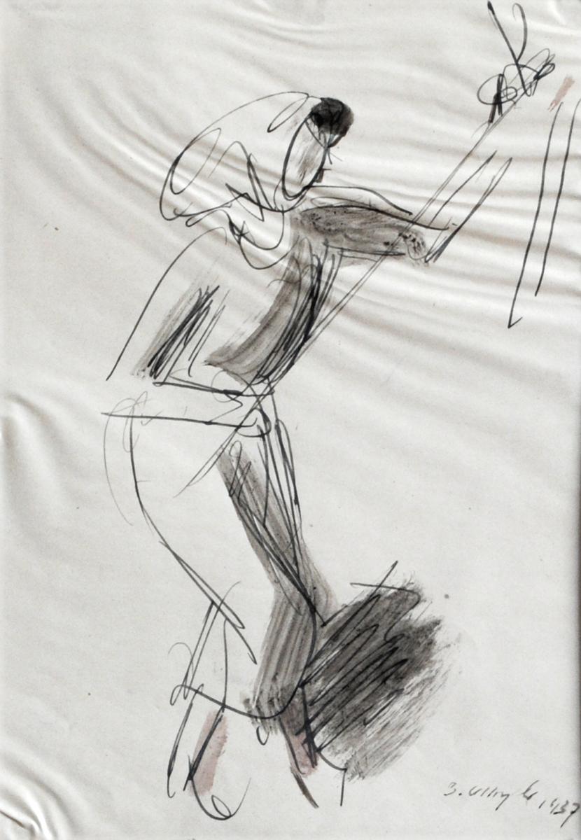 uhel, papír, 1947, 49,4 x 25 cm, sign. LD B. Ullrych 47, při okrajích pokrčený papír, na papíře drobné skvrnky, Aantiqari.at Radhošťská, ,