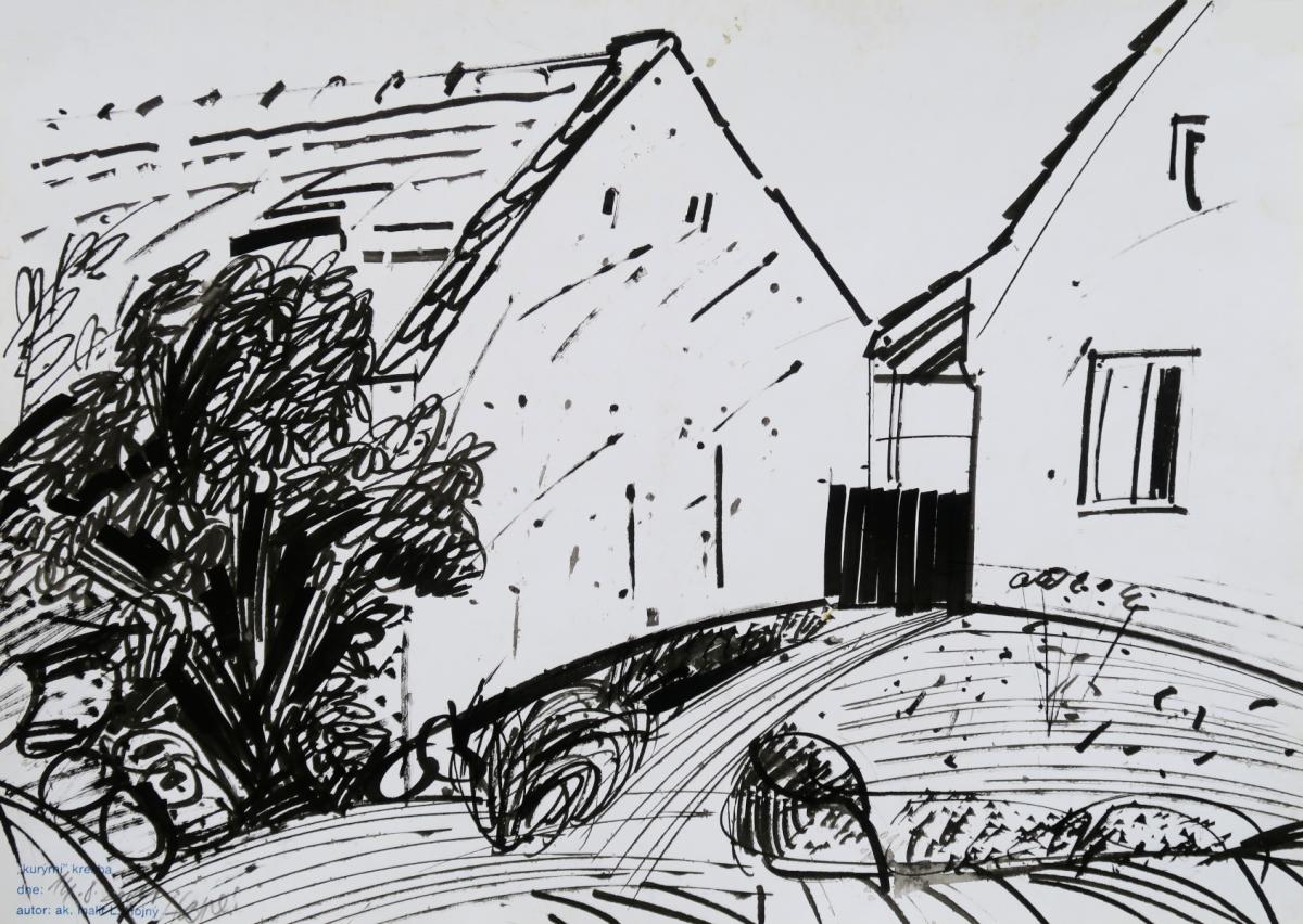 tuš, papír, 21 x 30 cm, při okrajích poškozený papír, Provenance: Antiquarian Ostrovní, disciple of Prof. J. Kotěra at Czech Technical School in Prague, Prof. M. Pirner and F. Thiele at the Academy of Fine Arts in Prague, later studied a akademies in Karlsruhe and Berlin, member of the group Tvrdoší…