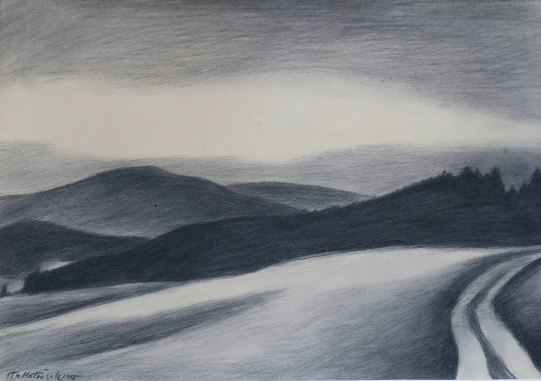 uhel, papír, 1968, 35 x 49 cm, sign. LD Ota Matoušek 68, rám, na rámu drobné oděrky, Provenance: Antiquarian Ostrovní, the disciple of Prof. J. Loukota, V. Bukovac, J. Preisler and M. Pirner at The Academy of Fine Arts in Prague, attended the graphic course at the atelier of Prof. F. Kobliha, founde…