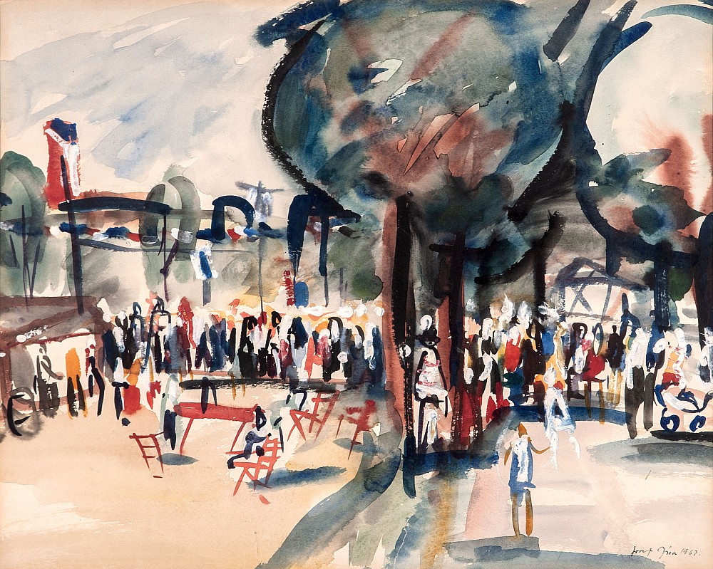 akvarel, papír, 1962, 43 x 54 cm, sign. PD Josef Jíra 1962, rám, dílo předního českého umělce pocházejícího z Turnova. Jíra vystudoval Akademii výtvarných umění, stal se zakládajícím členem skupiny M 57, později Nové skupiny. Patří k nejvýraznějším poválečným expresionistům, jeho dílo má až existenc…