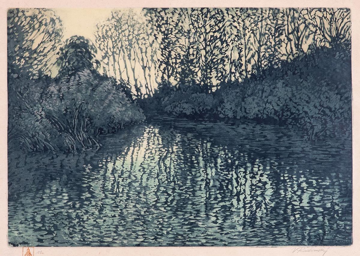 akvatinta, 38 x 54 cm, sign. PD V. Radimský, rám, PD značeno autorským razítkem, mírně pokrčený papír, Provenance: Antiquarian Dlážděná