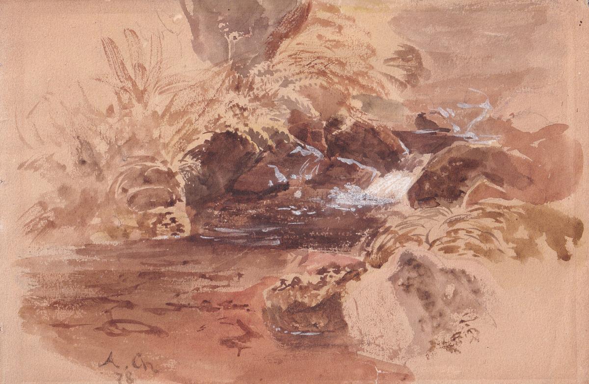 akvarel, papír, 1878, 15,9 x 24,3 cm, sign. LD Chittussi 78, dvojice akvarelových studií představuje Antonína Chittussiho jako mistra plenérové skici v přelomovém roce 1878, krátce před jeho odjezdem do Francie. První list zachycuje detail Šáreckého údolí se skalnatým korytem potoka; Chittussi zde s…