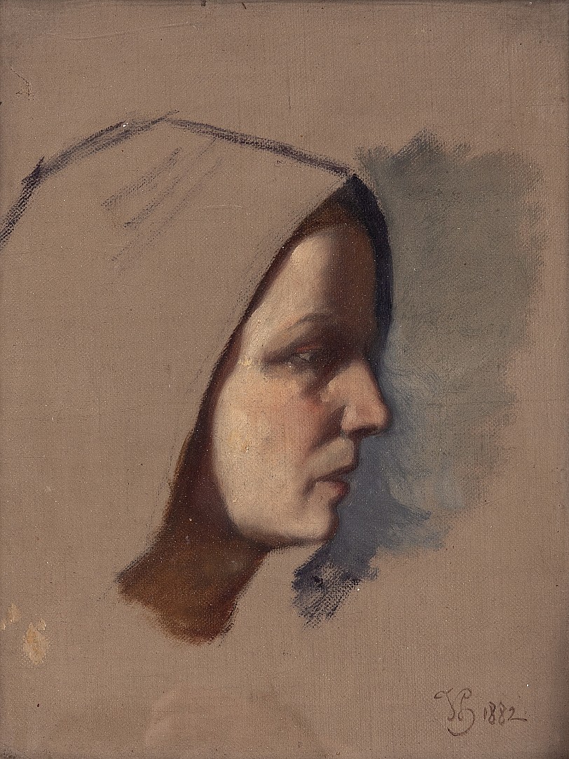 olej, plátno, 1882, 27,5 x 21 cm, sign. PD VH 1882, rám, konzultováno a ověřeno PhDr. Mgr. Michaelem Zachařem; Tento jemný portrét v profilu zachycuje mladou ženu s hlavou zahalenou do šátku, provedený s charakteristickou malířskou jistotou a citem pro světlo. Dílo představuje ukázku Hynaisova mistr…