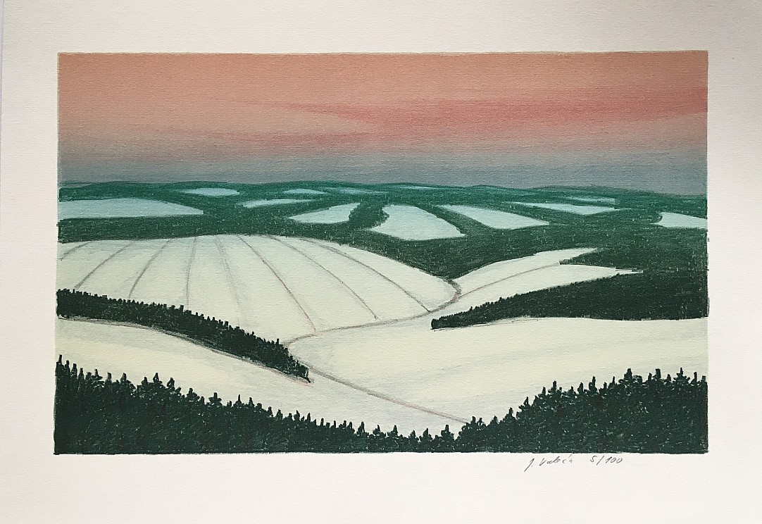 litografie, 26 x 42 cm, sign. PD J. Valečka, č. 54/100, the disciple of prof. J. Sopko and J. Hendrych at The Academy of Fine Arts in Prague, studied at Vestlandes Kunstakademi in Bergen, Staatliche Kunstakademie in Karlsruhe, The Royal Academy in Rotterdam