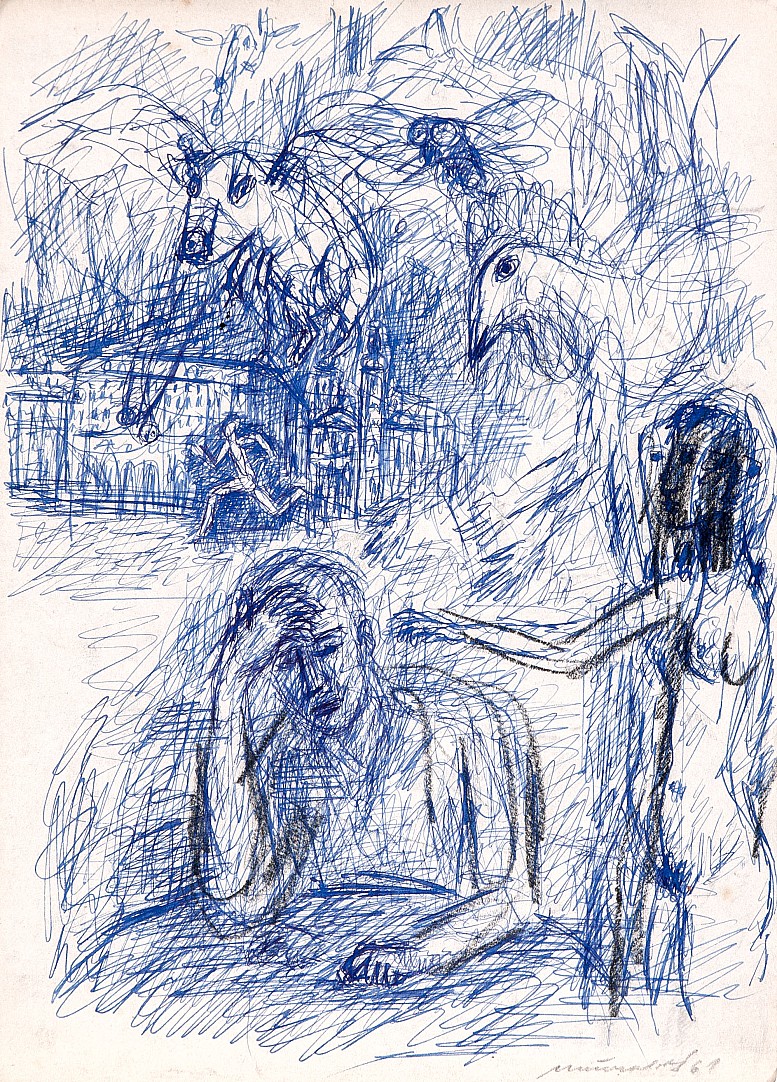 rukopis, 13,5 x 12 cm, 2x ručně psaný text na volných papírových kartách, r. 1974, dobrý stav, Provenance: Antiquarian Dlážděná, the disciple of prof. A. Hofbauer and Z. Kratochvil at The Academy of Arts, Architecture and Design in Prague, member of The Hollar Association of Czech Graphic Artists, T…