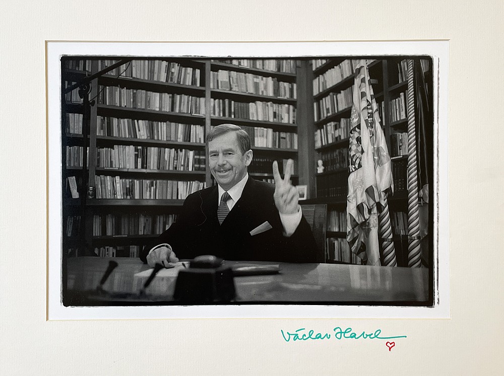 fotografie, 22 x 32,5 cm, značeno vzadu štítkem © Oldřich Škácha, pasparta, velikost pastarty 40 x 50 cm, originální podpis Václava Havla, NU pasparta drobně ušpiněna
