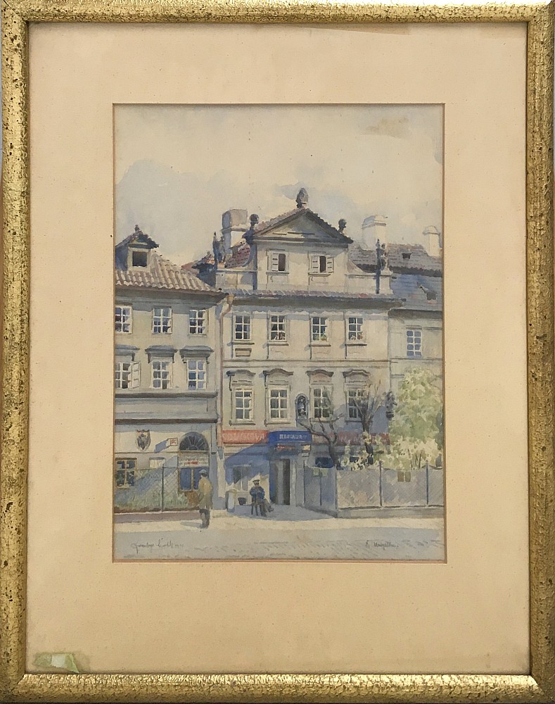 akvarel, tuš, papír, 1930, 26 x 28,5 cm, LD monogr J. H. 1930, rám, the disciple of prof. Marak at The Academy of Fine Arts in Prague