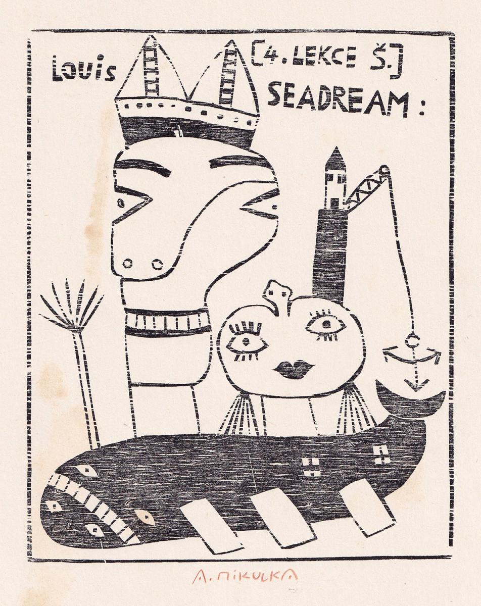 linoryt, 18,7 x 15,1 cm, sign. DU A. Mikulka, ze souboru Cirkus 82, vyšlo nákladem autorů jako neprodejný tisk v počtu 60 výtisků, Praha 1982, Provenance: Antiquarian Dlážděná, disciple of Prof. J. Brukner at Arts and Crafts School in Brno and of Prof. J. Želibský at the Academy of Fine Arts and Des…