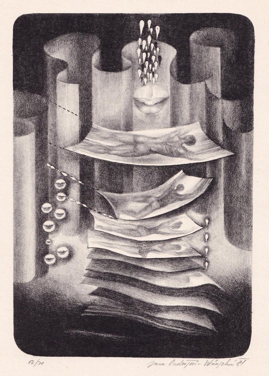 litografie, 1981, 22 x 15,3 cm, sign. PD Jana Ondrušková-Wünschová 81, č. 62/70, ze souboru Cirkus 82, vyšlo nákladem autorů jako neprodejný tisk v počtu 60 výtisků, Praha 1982, Provenance: Antiquarian Dlážděná
