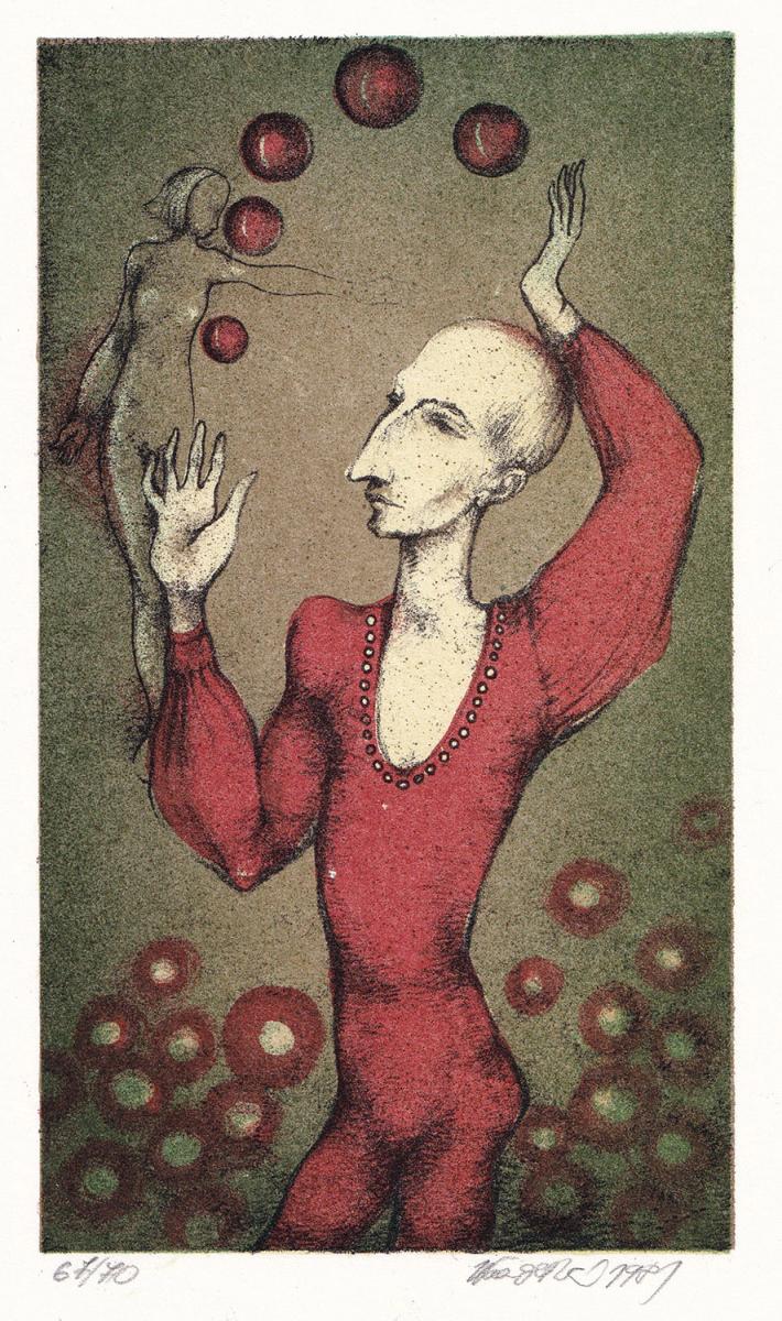 lept, 14,8 x 10,7 cm, sign. PD Petr Hampl, č. 65/80, ze souboru Cirkus 82, vyšlo nákladem autorů jako neprodejný tisk v počtu 60 výtisků, Praha 1982, Provenance: Antiquarian Dlážděná, the disciple of prof. V. Tittelbach and L. Cepelak at The Academy of Fine Arts in Prague, member of The Association …