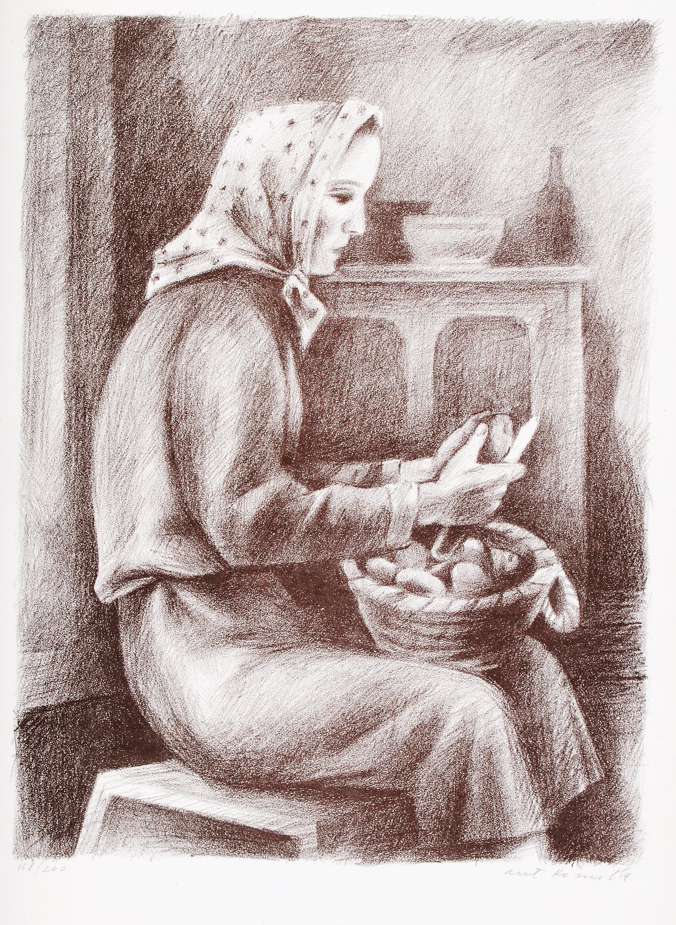 litografie , 35,5 x 27 cm, sign. PD Ant. Homolka, č. 168/200, slepotisk ve středu pod grafikou , Provenance: Antiquarian Dlážděná, the disciple of prof. Benda at The Secondary School of Applied Arts in Prague, prof. W. Nowak and T. F. Simon at The Academy of Fine Arts in Prague, member of The Hollar…
