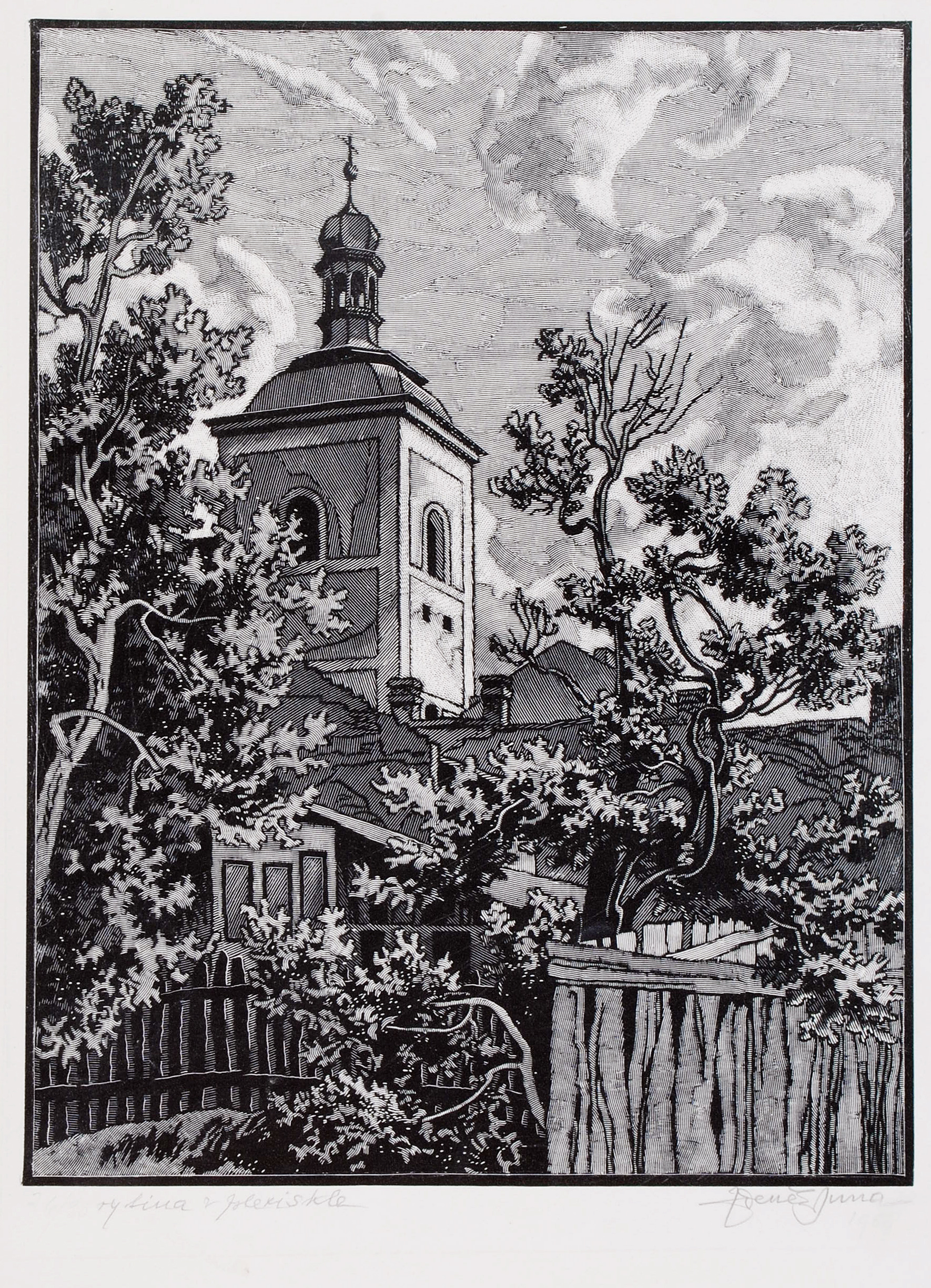 dřevoryt, 1964, 20,5 x 38,5 cm, sign. NU Liesler 64, č. 34/160, Provenance: Antiquarian Ostrovní, the disciple of prof. C. Bouda, O. Blazicek, member of The Royal Belgian Academy, The Manes Association of Fine Artists and The Hollar Association of Czech Graphic Artists, member of the group Sedm v ri…