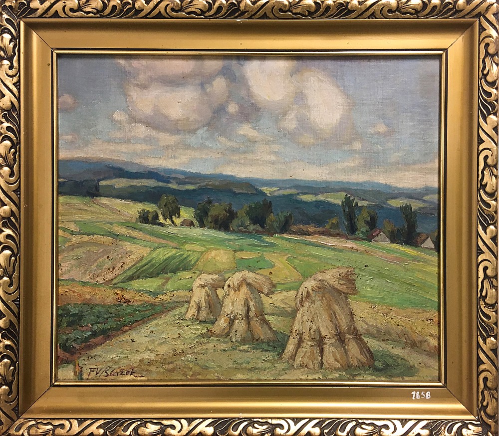 olej, plátno, lepenka, 32,5 x 38,5 cm, sign. LD F. V. Blažek, rám