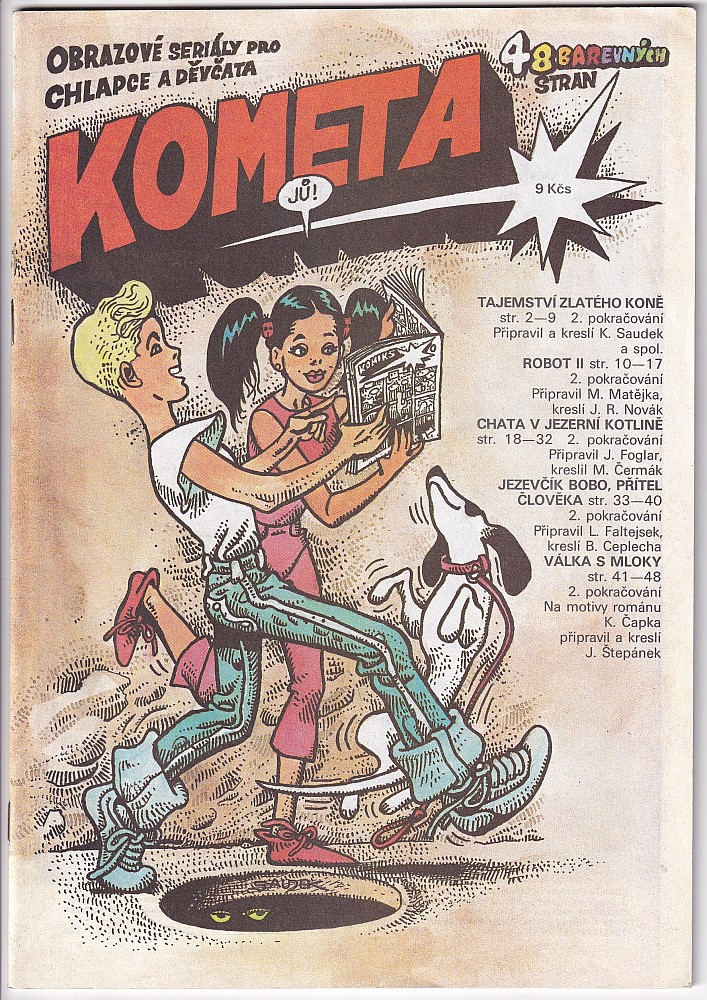 sešit, 5. pokračování komiksu Ztracený kamarád (Jaroslav Foglar) K. Saudek, vyd. Comet a Svépomoc, Praha, 1990, sešit, 48s., oslí růžky, nepatrně odřený hřbet, jinak pěkný stav, Aantiqari.at Radhošťská,